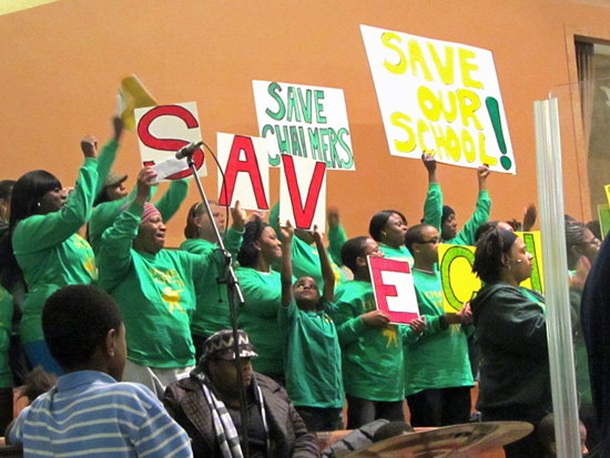 At a hearing held at the CPS headquarters on the evening of May 2, 2013 the Chalmers community made a strong case for their school. Louis Lane, an alumni, parent and third grade teacher at Chalmers explains that Chalmers welcomes everyone:
